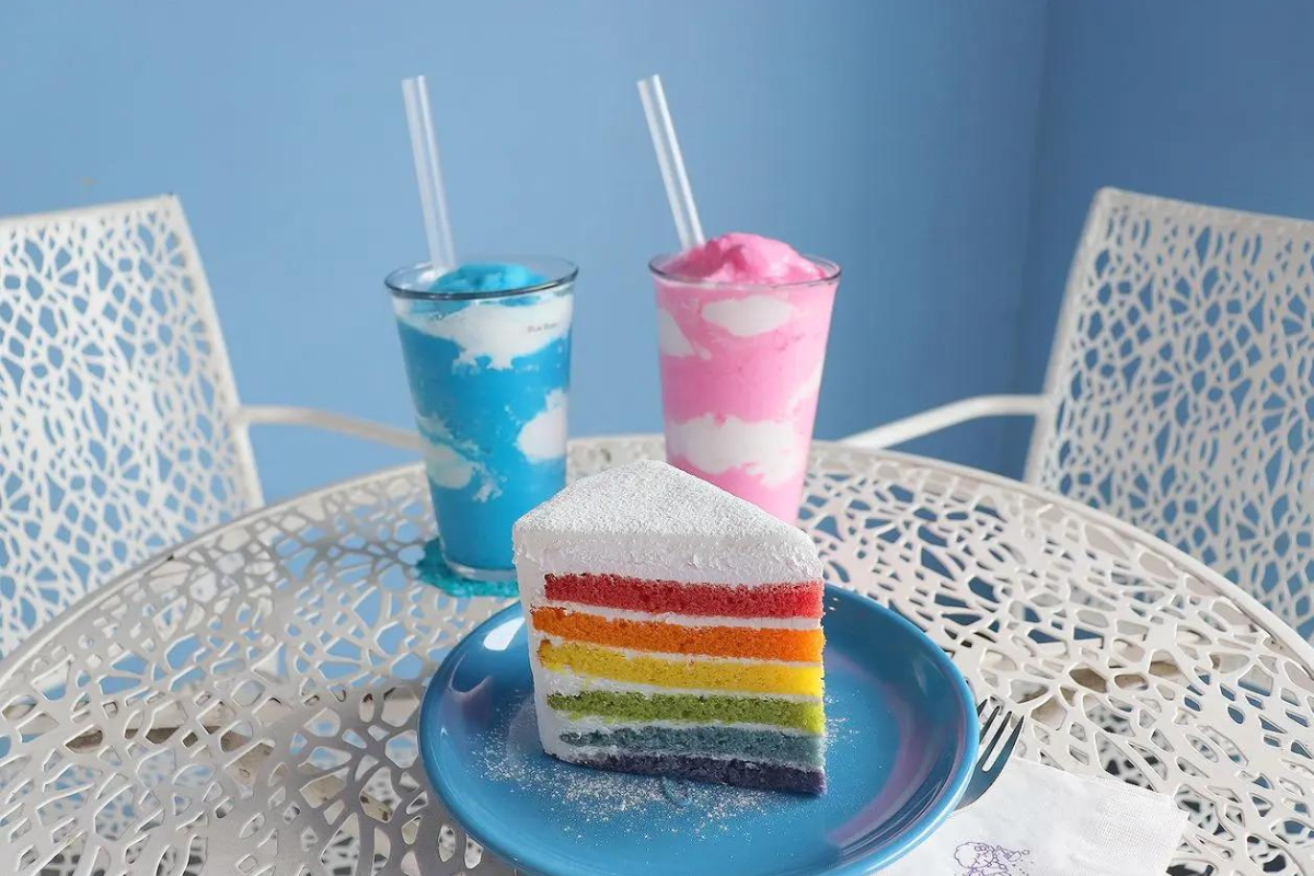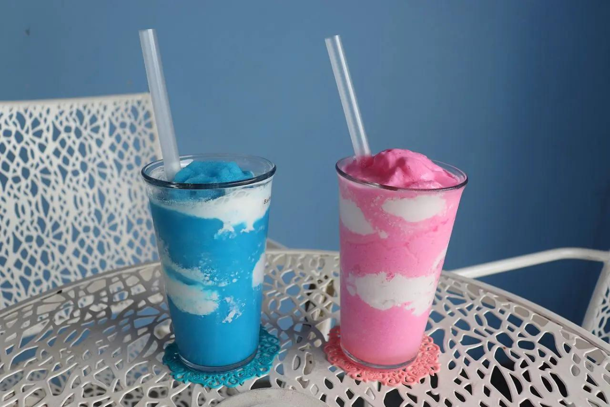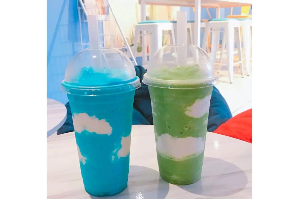 Es ist sehr berühmt für seine himmelblauen Getränke, die genau wie der blaue Himmel und weiße Wolken aussehen.