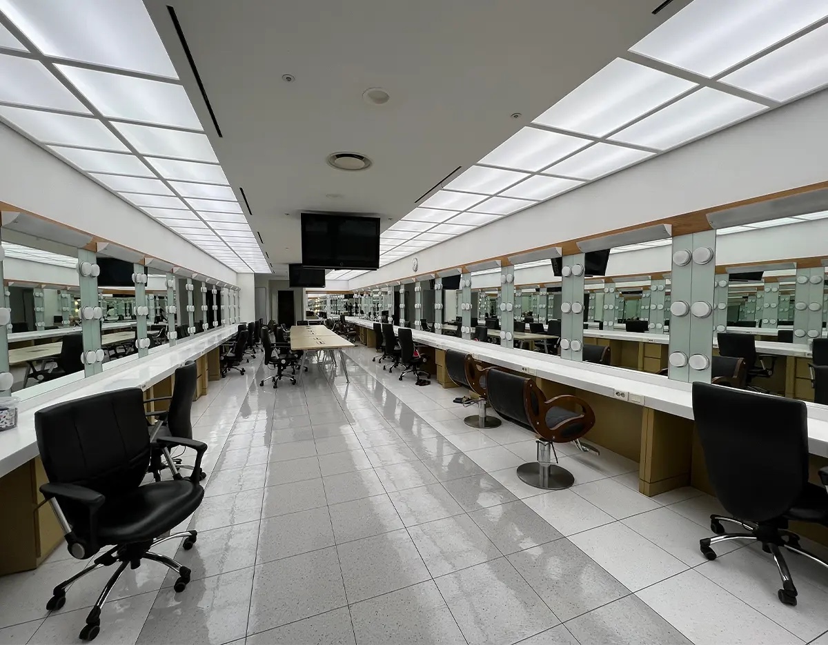 Dies ist der Raum, den die Prominenten, die in der Show auftreten, tatsächlich nutzen. Sie können aus nächster Nähe die Szene sehen, in der Haare, Make-up und Styling stattfinden, was Ihnen ermöglicht, den Vorbereitungsprozess hinter der Sendung lebhaft zu erleben.
