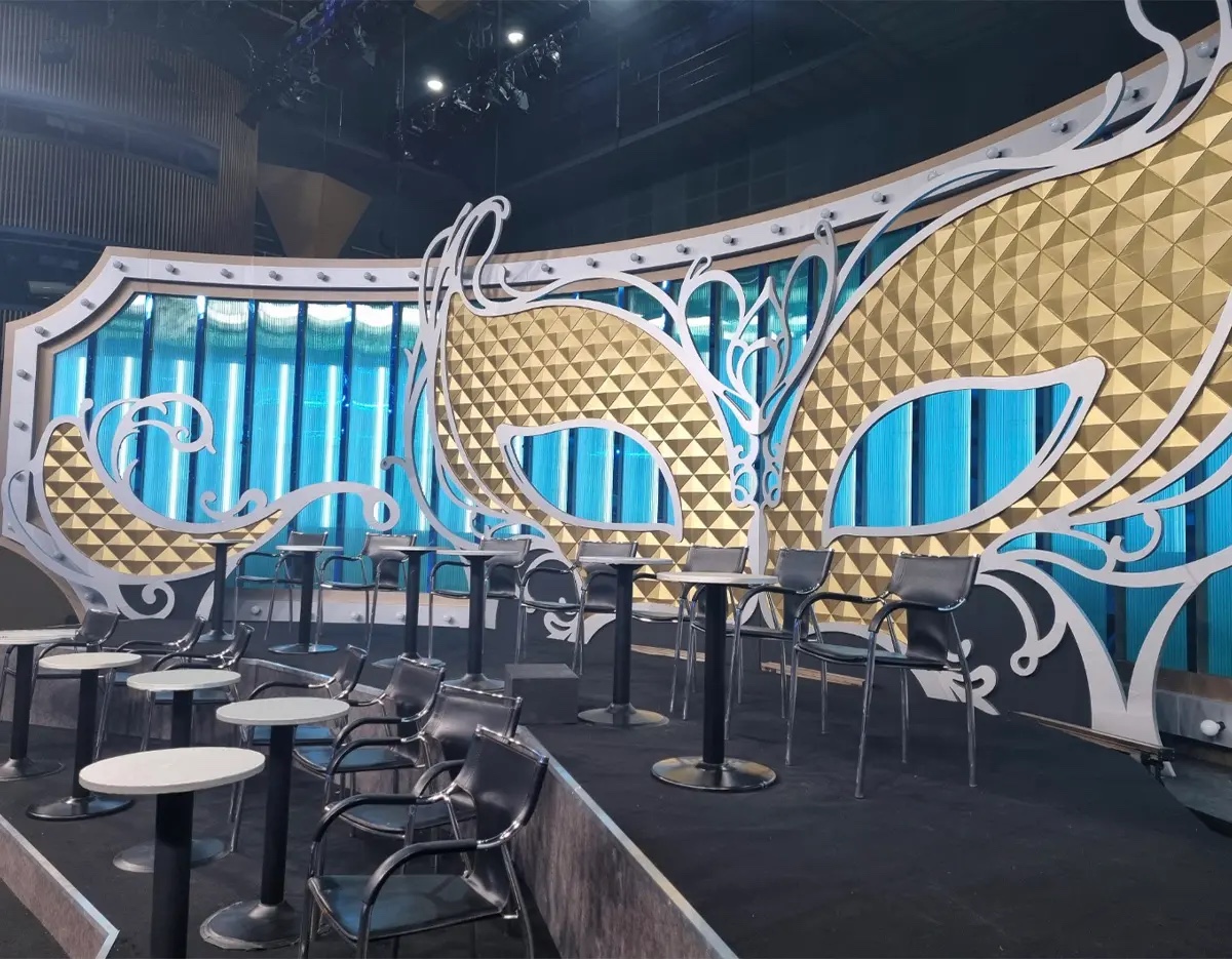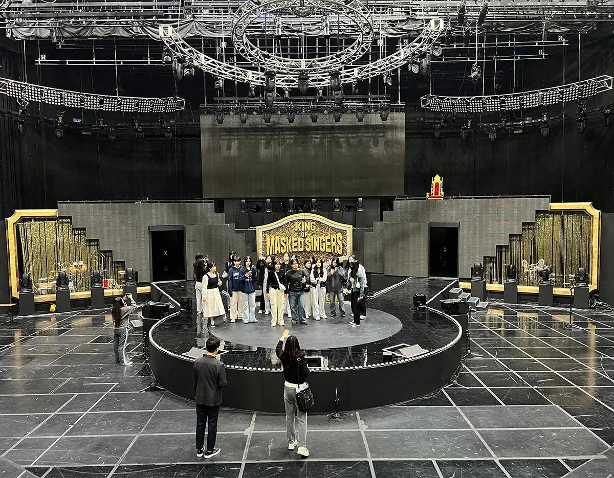 Dies ist das tatsächliche Filmset eines Musikwettbewerbsprogramms mit atemberaubenden Bühnenlichtern und markanten Masken. Es ist ein Raum, in dem man die besondere Bühnenatmosphäre lebhaft spüren kann, während die Teilnehmer nur durch Gesang antreten und ihre Identitäten verbergen.