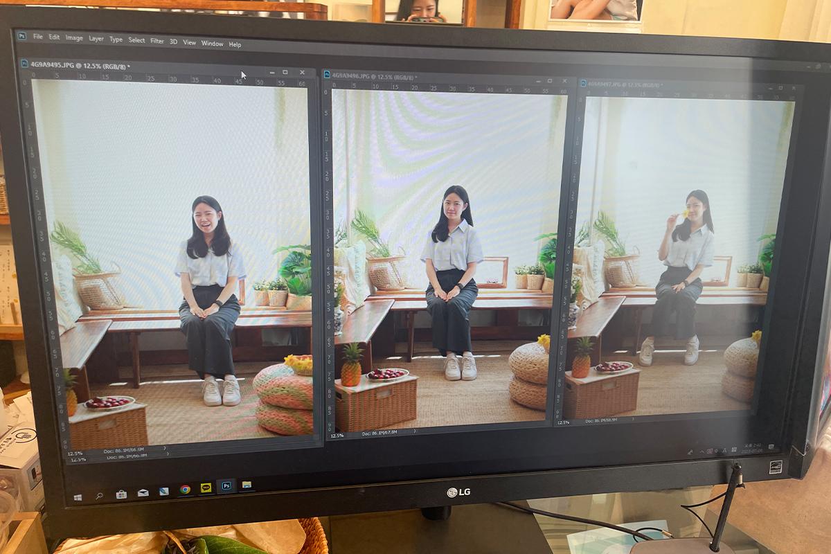 After about 20 minutes of shooting with various concepts, you can proceed to the selection process. On the day the editor visited, it was rainy and cloudy, so the seaside didn't come out in the photos. However, there were many good pictures, and the editor wanted to enhance them by adding a seaside background through editing. As a result, the editor decided to have one more photo edited.