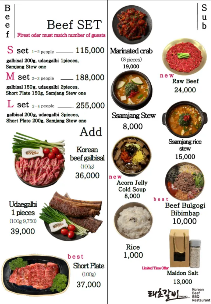 Why We Recommend ItFresh Korean beef short ribs and premium cuts grilled over charcoal for a richer flavor.Sit back and enjoy when the staff cooks the meat for you. Enjoy the tasty side dishes and other menu options.Clean, well-maintained space with friendly service.Only a 2-minute walk from Hongik Univ. Station.Menu* As of August, 2025.