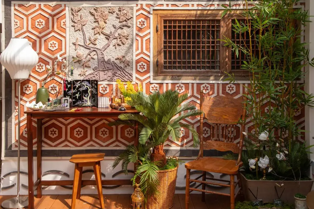 En cuanto entras, la pared de fotos decorada con espejos grandes y pequeños hace que se sienta como si hubieras llegado a una exposición.