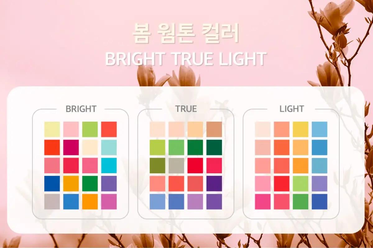 Luego, según el tono, la saturación y el brillo, se clasifican en cuatro tipos: Primavera, Verano, Otoño e Invierno, y se dividen aún más en tres subtipos. Veamos más de cerca cada tipo a continuación.
