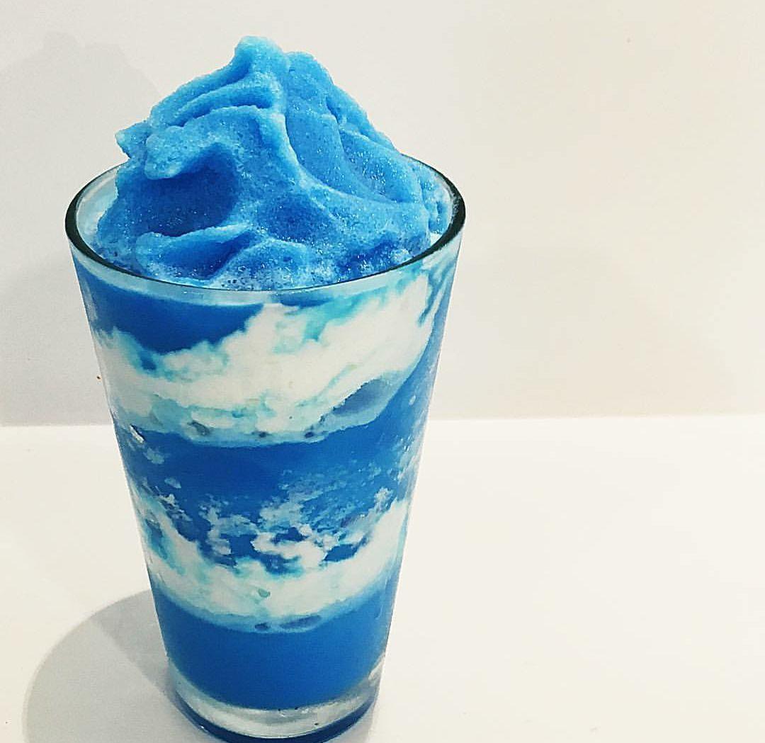 Blue Blues est connu pour ces mélanges avec de belles couleurs. La boisson ressemble exactement à un ciel bleu clair. La couche bleue est un type de smoothie.