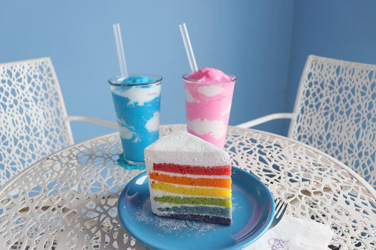 Tous les desserts de ce café sont inspirés par le ciel ; voici un gâteau fait d'arcs-en-ciel. Très Instagrammable.