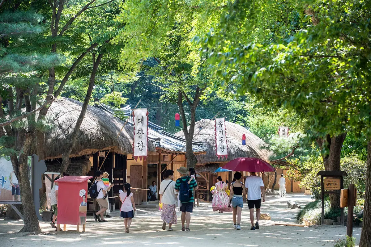 Le Village Folklorique Coréen est un parc à thème qui reconstitue de manière vivante la vie et la culture traditionnelles coréennes de la fin de la période Joseon.
