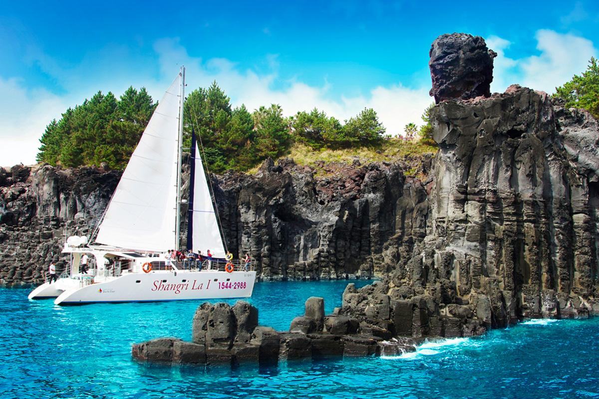 Anda dapat menikmati pemandangan pantai terbaik Jeju di Jusangjeolli Cliffs (Hexagonal Columnar Joints) dan menikmati memancing laut, menyeruput anggur dan teh, dan bersantai di kamar tidur Anda. Anggur, teh, dan minuman gratis disediakan, dan Anda dapat mencicipi seafood segar yang baru saja ditangkap tepat di tempatnya. Terletak di Jungmun, fasilitas kapal pesiar terbesar di Jeju! Pengalaman berlayar kapal pesiar dan jet boat dengan latar belakang Jusangjeolli Cliffs! Ayo bertemu di Pacific Rimsoem Marina!