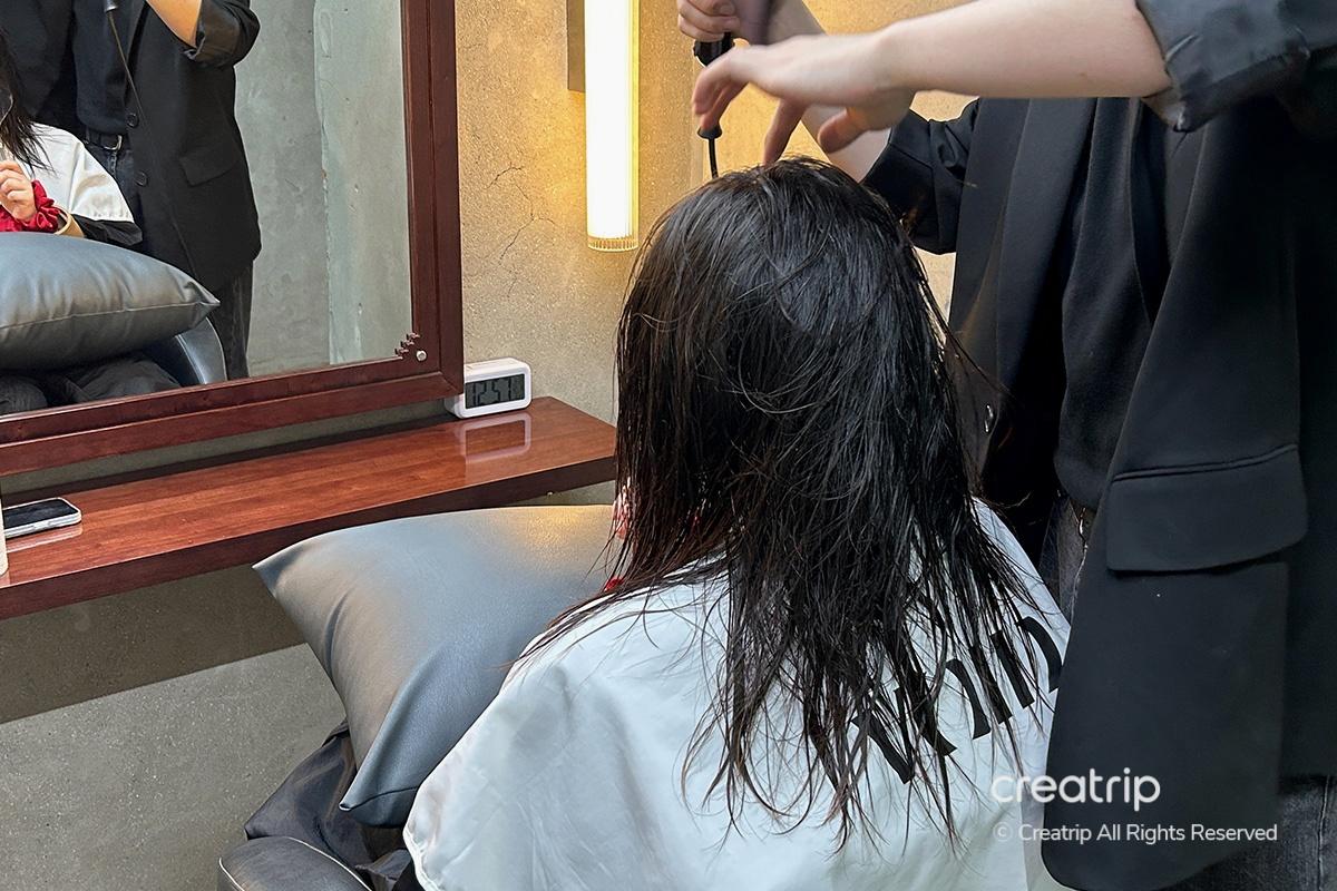 Poi sono andato alla stazione dello shampoo per fare un trattamento alla testa per circa 10 minuti.Ho avvertito una sensazione di freschezza su tutta la testa, il che è stato piacevole.