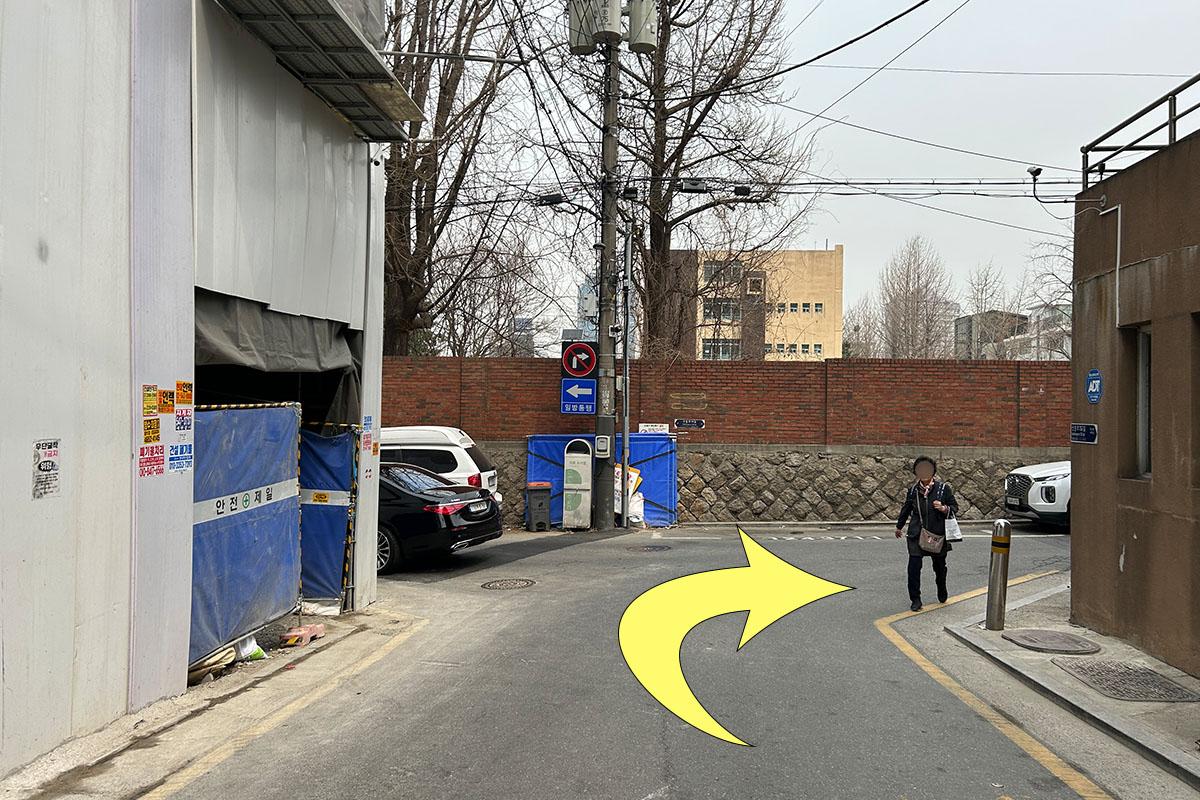 Gira a destra alla fine del vicolo.
