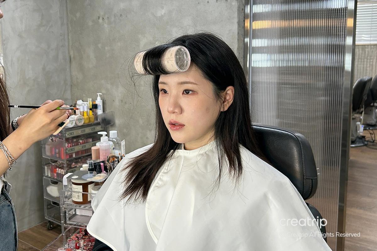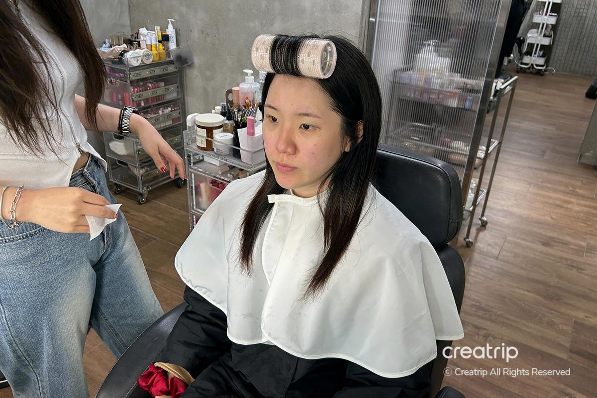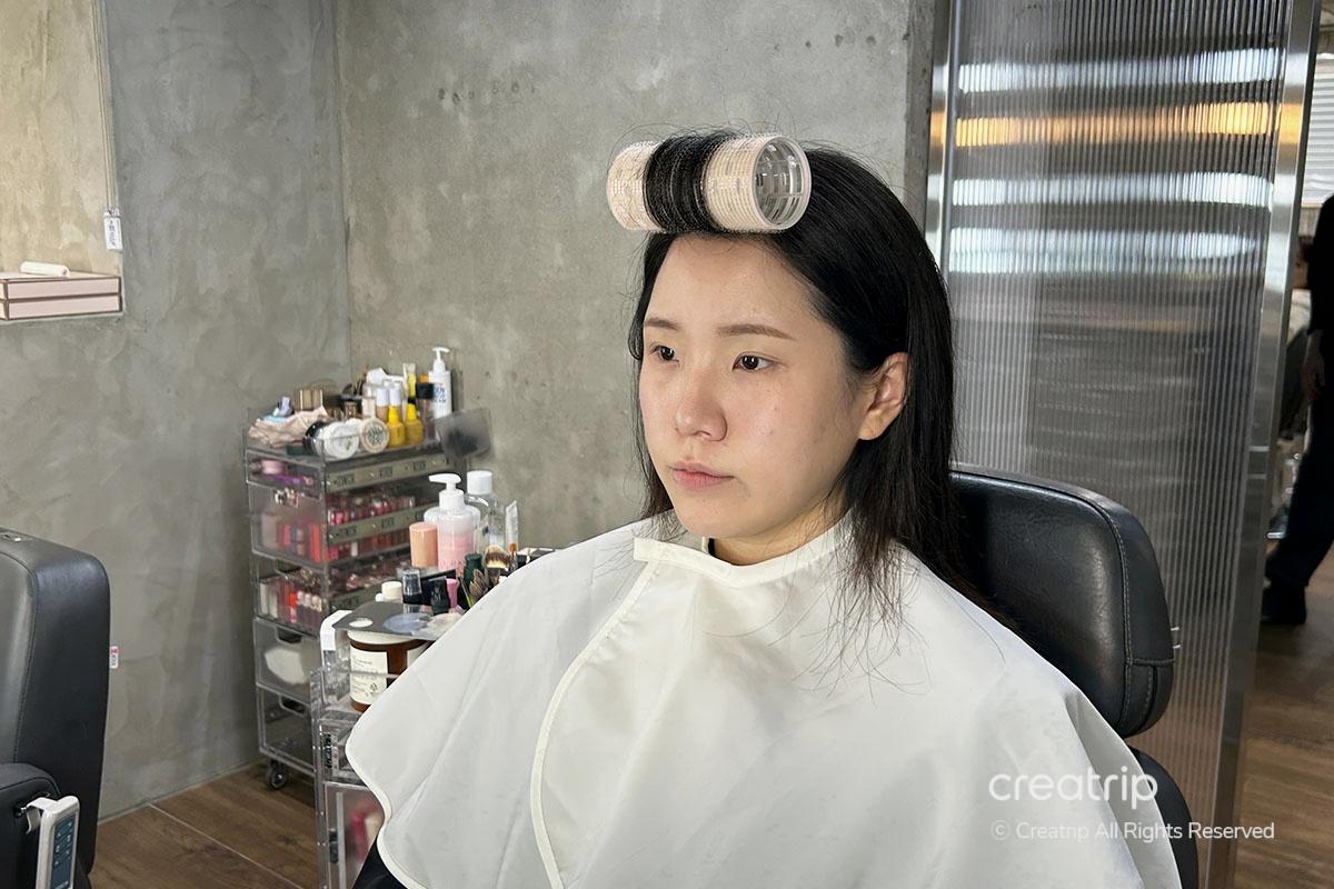 Ora, se torni dal parrucchiere, loro si occuperanno dei tuoi capelli. Questo processo può variare per ogni persona, ma richiede circa 30-40 minuti. Puoi mostrare una foto del tuo acconciatura desiderata. Io ho chiesto un'acconciatura che si abbinasse al mio trucco, e lui si è preso cura di tutto con attenzione!