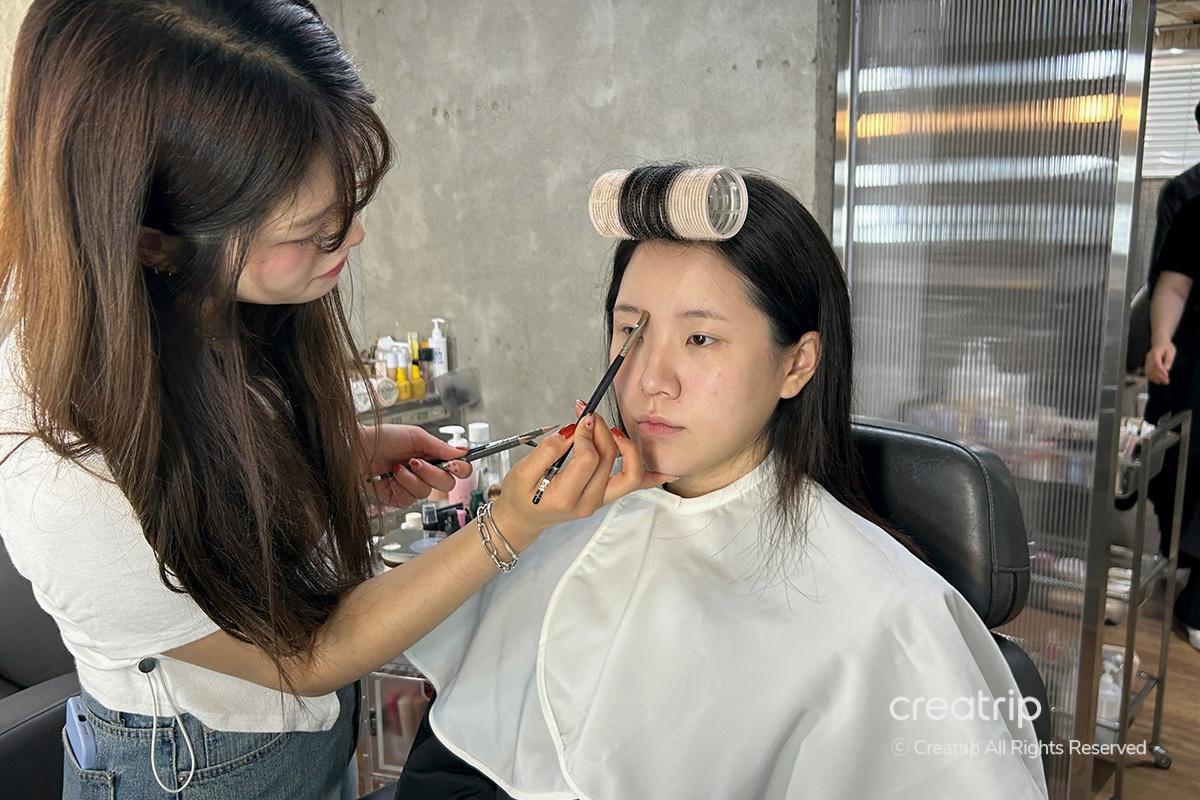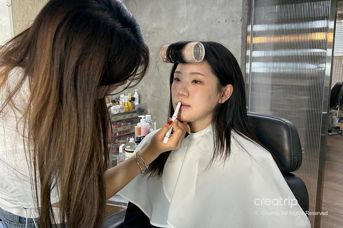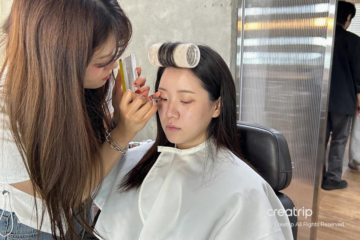 Applicare ciglia finte può essere complicato, ma lei ha preso il suo tempo e le ha applicate con cura per adattarsi alla mia forma degli occhi. Dopo aver finito il trucco, ha addirittura menzionato che i clienti sono invitati a scattare foto dei prodotti utilizzati quel giorno, il che ho trovato un bel tocco. Ho apprezzato particolarmente come ha sottolineato quali articoli potevano essere trovati da Olive Young!