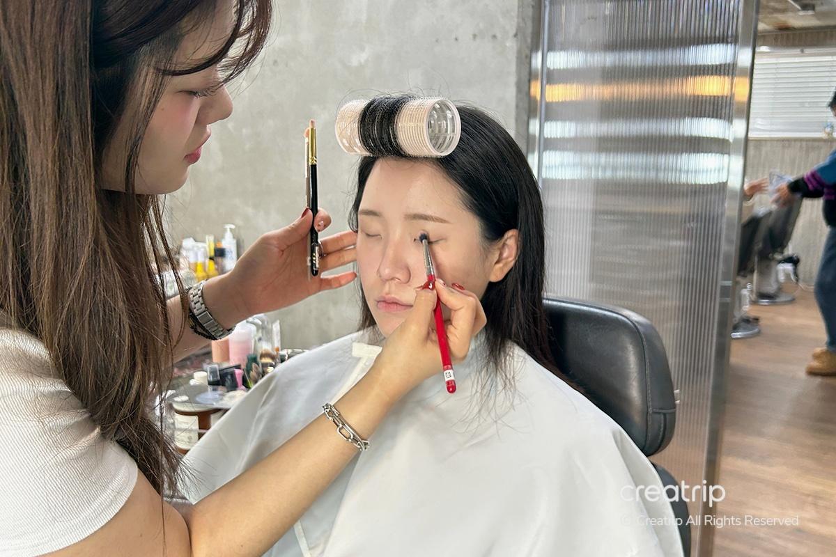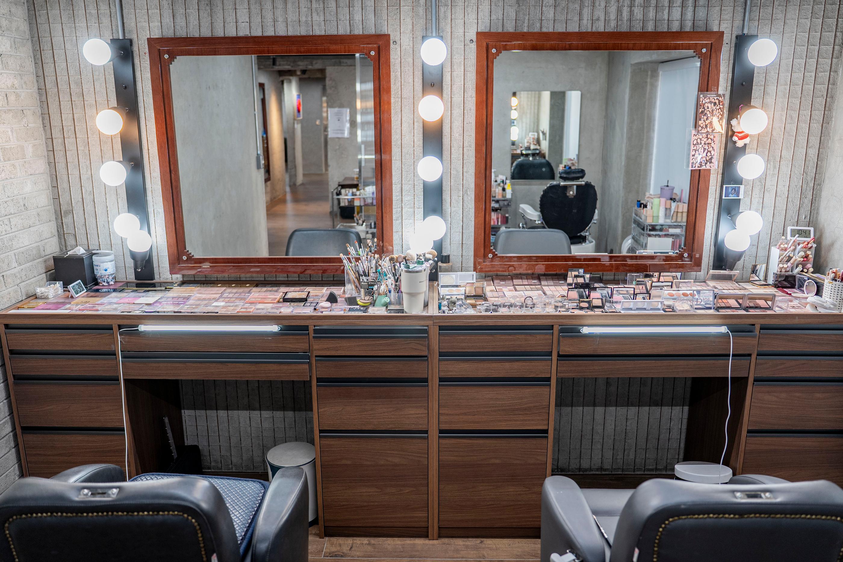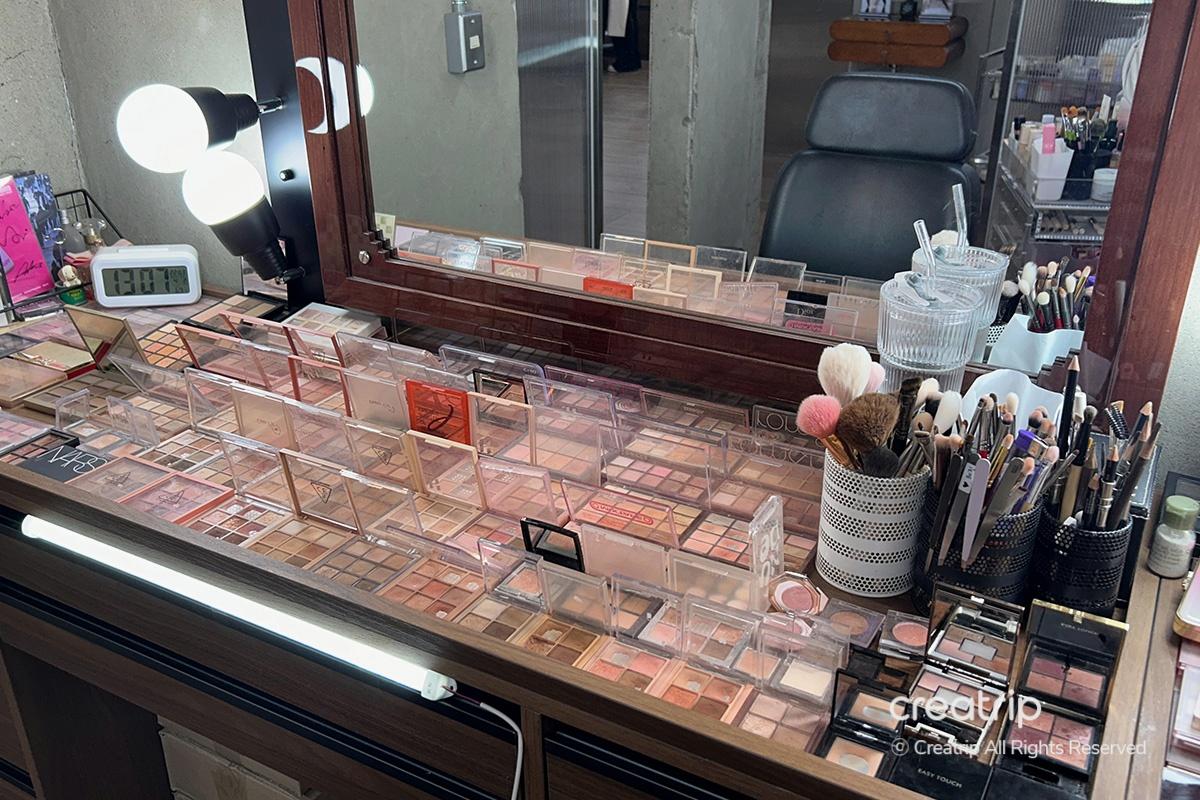 Ci sono diversi prodotti preparati nella stanza di trucco. Va bene portare e mostrare foto dei tuoi attori o idoli preferiti, ma il truccatore può anche creare uno stile che si adatta a te.