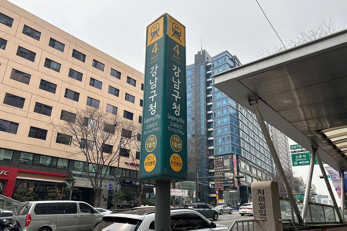 Esci dalla Stazione Ufficio di Gangnam-gu all'Uscita 4.