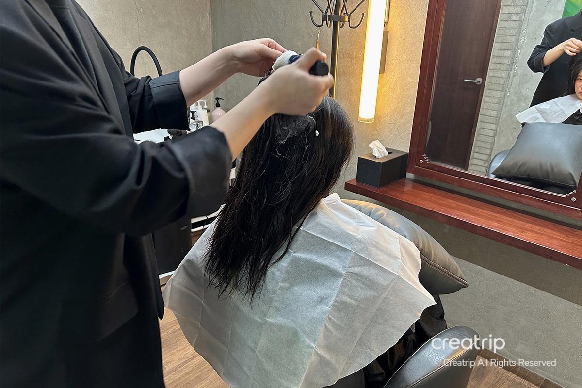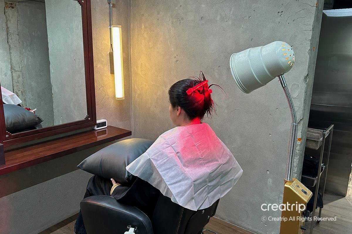 Prima, ho iniziato con il trattamento shampoo esfoliante. Hanno spruzzato un prodotto esfoliante sul cuoio capelluto e hanno ammorbidito le cellule morte della pelle con una macchina a infrarossi. Ci sono voluti circa 10 minuti, e il mio cuoio capelluto è gradualmente diventato fresco e rinvigorito.