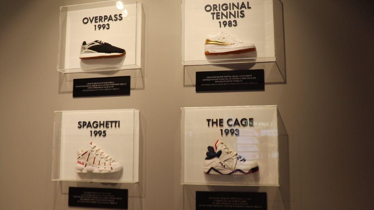 Al primo piano del negozio di Seoul ci sono prodotti come il Disruptor 2, Fila Ray, Fila Barricade XT97 che sono stati votati come le scarpe dell'anno da Footwear news (American Footwear News).