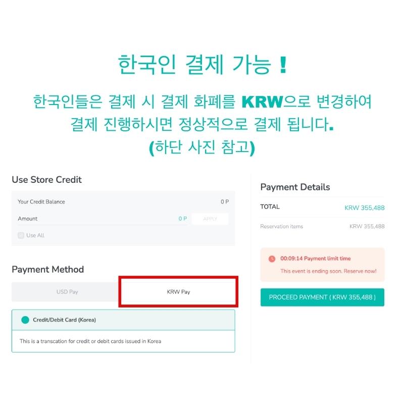 - Dopo aver selezionato il prodotto, durante il pagamento selezionare la valuta come sopra KRW