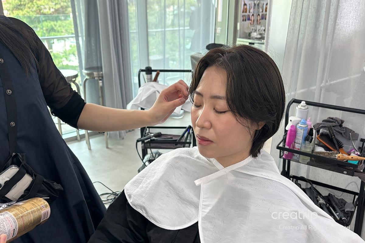 エディターはヘアとメイクを受け、一緒に訪問した一行はカット+カラーリング+ブロー+メイクを受けることにしました。