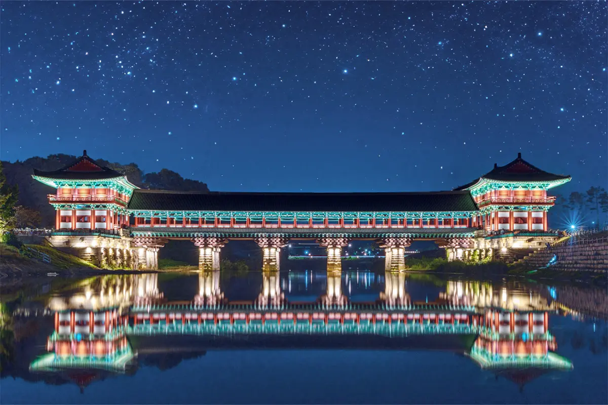 月精橋は、長い歴史を誇る石造アーチ橋で、古代の建築技術の高さを物語る貴重な遺構です。この橋は、月精川を横断する形で建てられ、何世代にもわたり慶州の交通の要所として重要な役割を果たしてきました。現在では、都市の歴史を今に伝える象徴的な建築物として、多くの人々に親しまれています。
