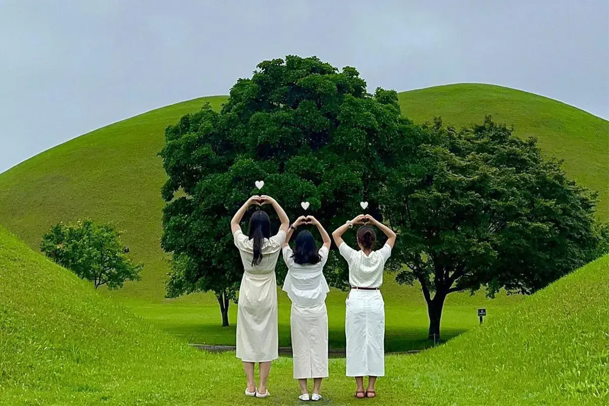 大陵苑は「王陵公園」としても知られ、新羅時代に築かれた23基の古墳が集まる歴史的な遺跡群です。中でも内部が公開されている天馬塚は、最も象徴的なスポットのひとつとして知られています。
