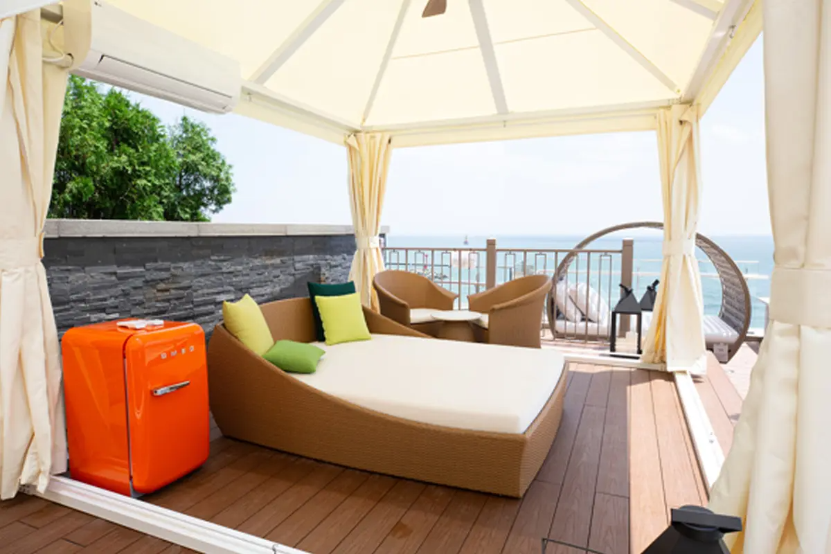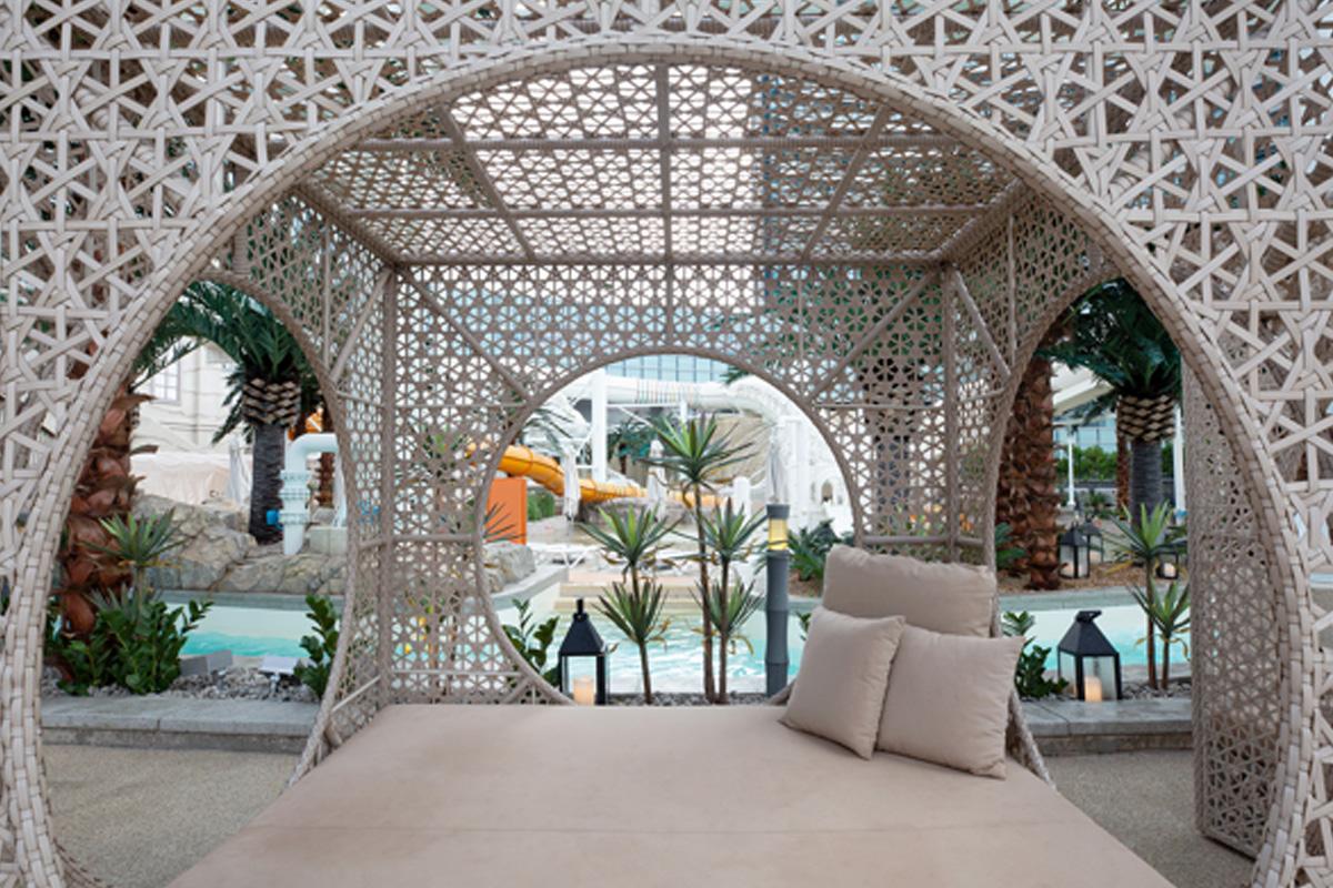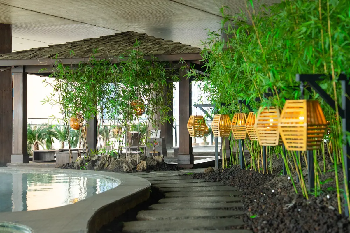 自分だけの秘密の庭でくつろいでください!屋外温泉をお楽しみください。サウナ着(入水不可)または水着を着用すると特別ラウンジをご利用いただけます。