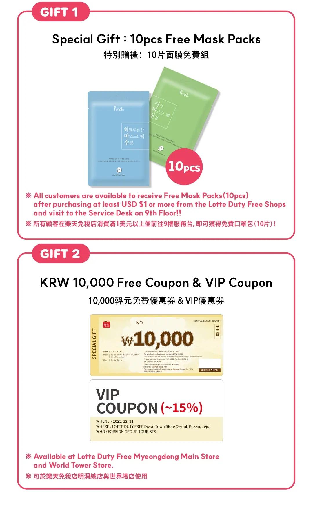 10,000ウォン商品券、VIP割引クーポン、そしてマスクパック10枚の特別特典満載!