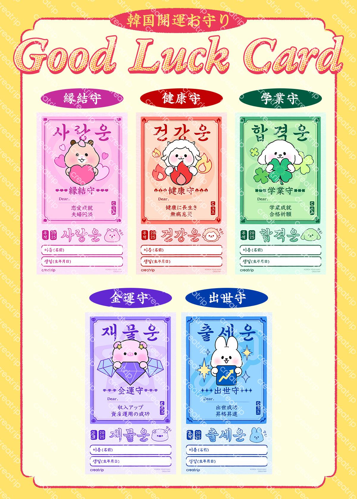 韓国にも符籍(부적:プジョク)といって日本のお守りのようなものがあります。最近はかわいいキャラクターデザインとフレーズが加わったお守りが流行中!大切な家族や友人、恋人へ幸運をもたらす韓国式のお守りをプレゼントしてみましょう!
