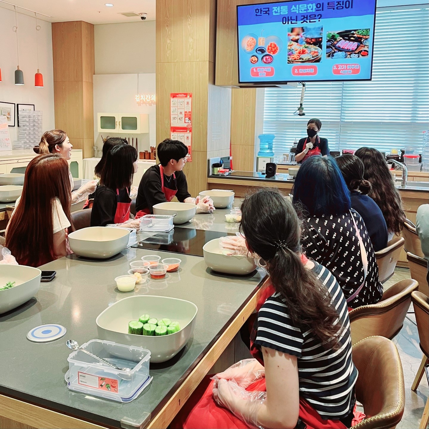 💚 おすすめポイント少人数制(8~10名程度)で実践的な会話能力の向上に特化したクラス便利な立地と充実した周辺環境を兼ね備えるで弘大キャンパスで韓国生活を満喫 世界的に認められた教材「NEWカナダKOREAN」の使用で効果的な学習をサポート 文化体験プログラムが充実(韓国料理作り、博物館観覧、伝統遊びなど)体系的なカリキュラムと徹底した学習管理で個人のレベルに合わせた効果的な指導学習相談・フィードバック制度を通じて弱点を克服しながら着実に成長できる無料の補習授業を設けることで欠席したぶんの学習の遅れを最小限に抑えられる韓国初の韓国語専門学院として1991年からの豊富な教育経験と高い指導レベルを誇る│文化体験イメージ[이미지 슬라이더]
