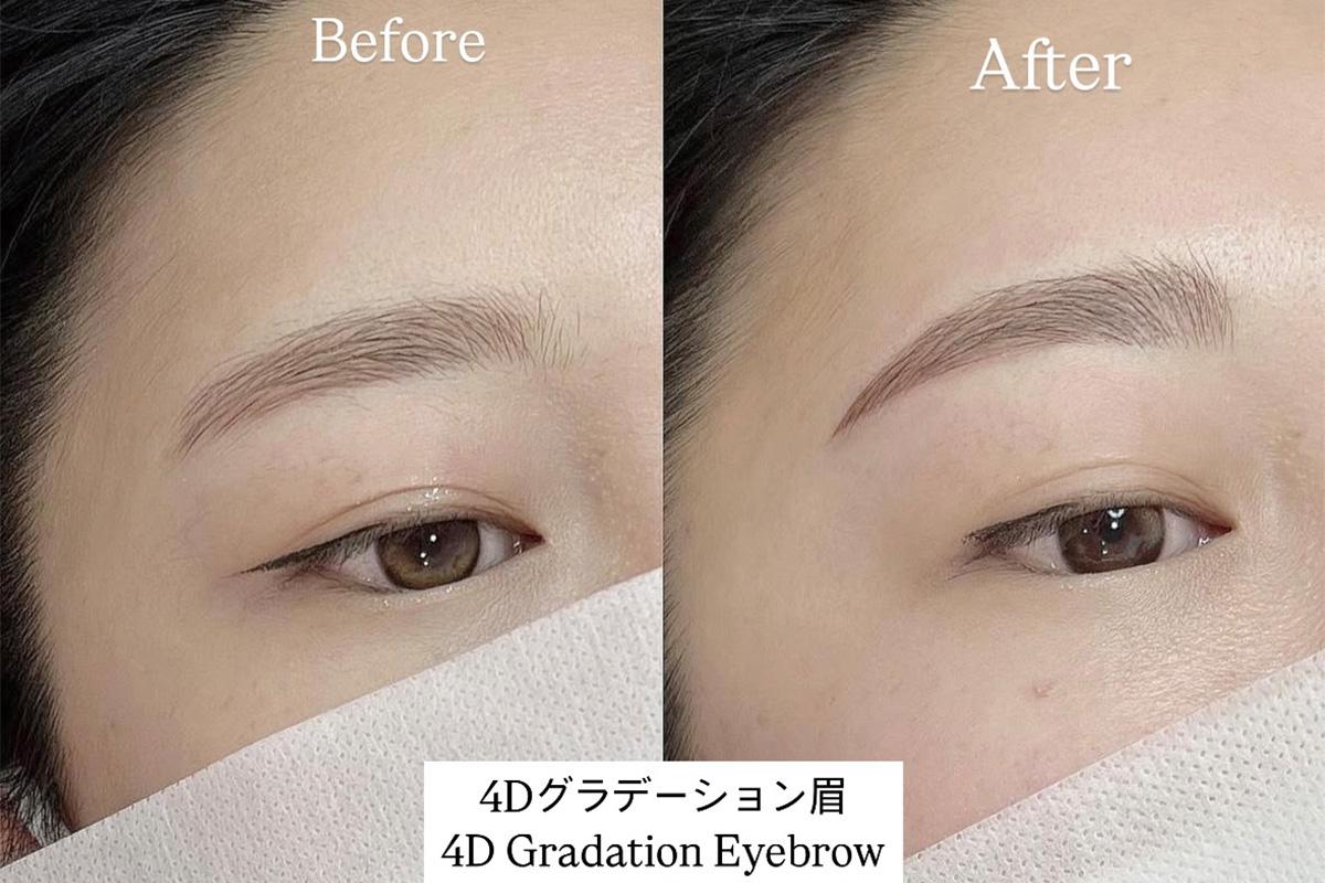 特徴 | 眉頭はやわらかく自然に、眉尻に向かって徐々に濃くなるグラデーション効果で仕上げる技法です。アイブロウペンシルを使わなくても、メイクをしたように整った眉を演出できます。 |