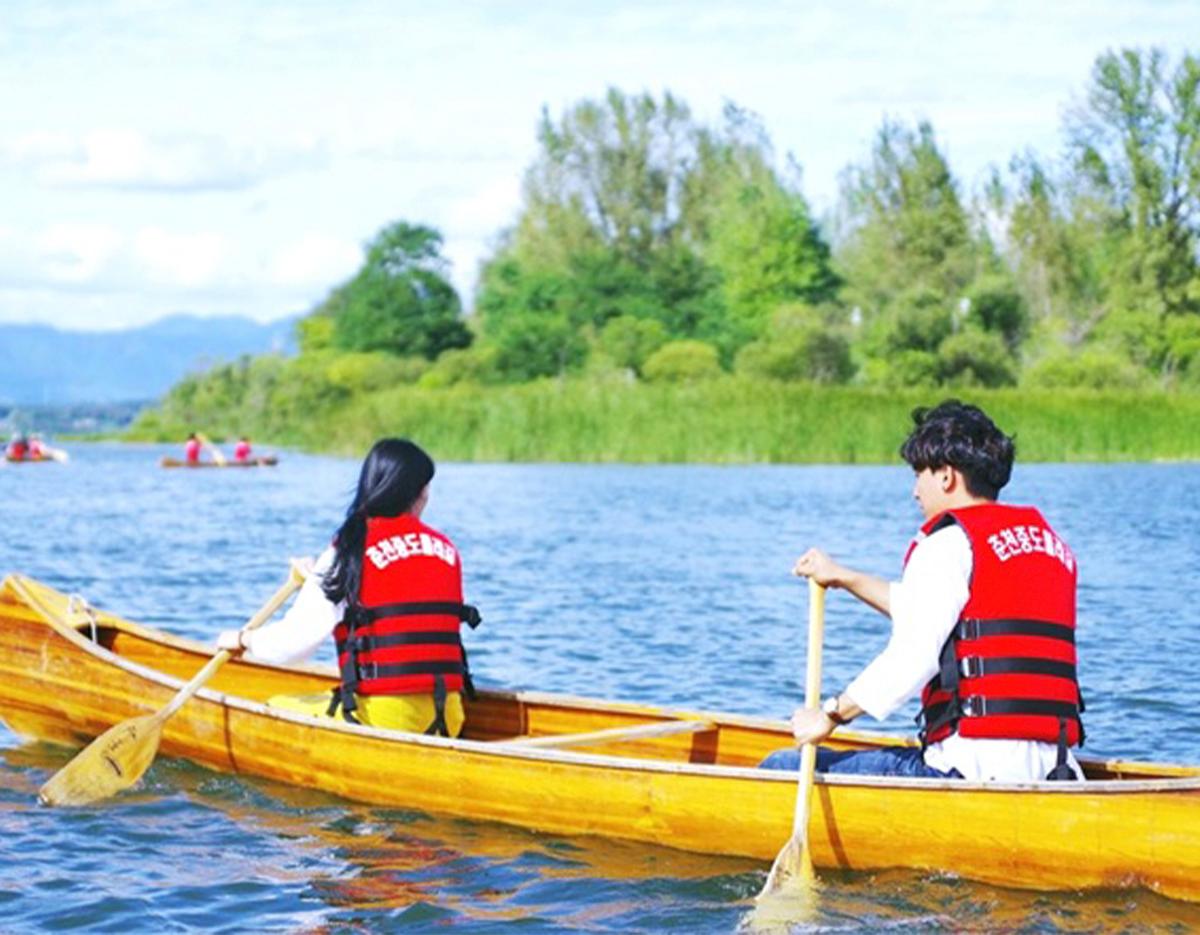• 春川湖上獨特的木製獨木舟體驗,沿著自然生態公園慢划放空,在清新湖景中享受專屬的靜謐時光。