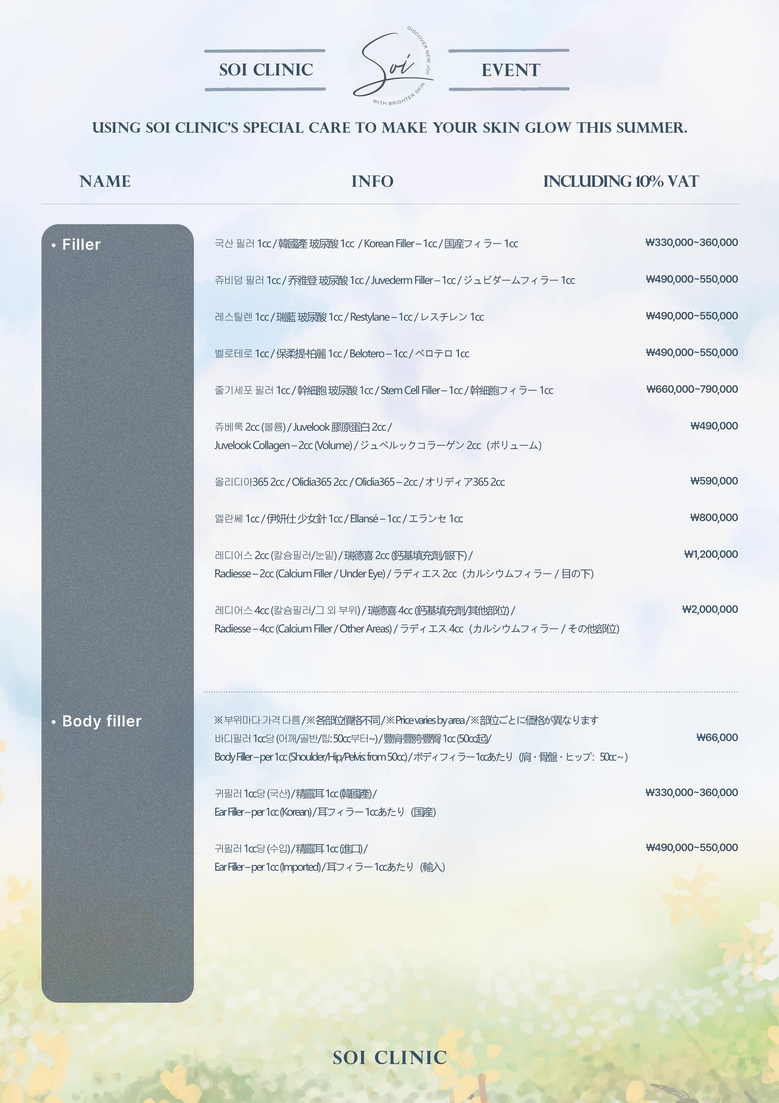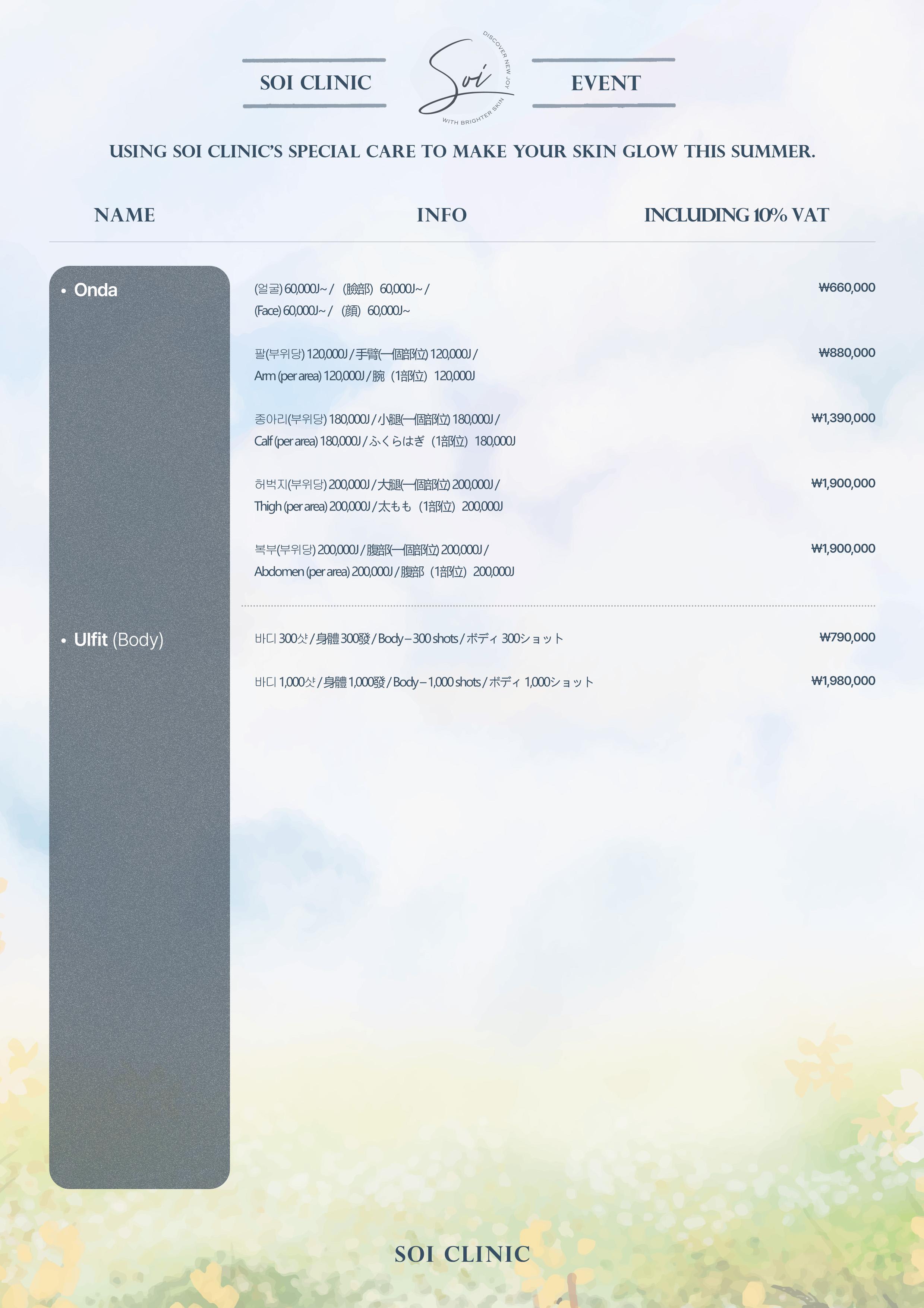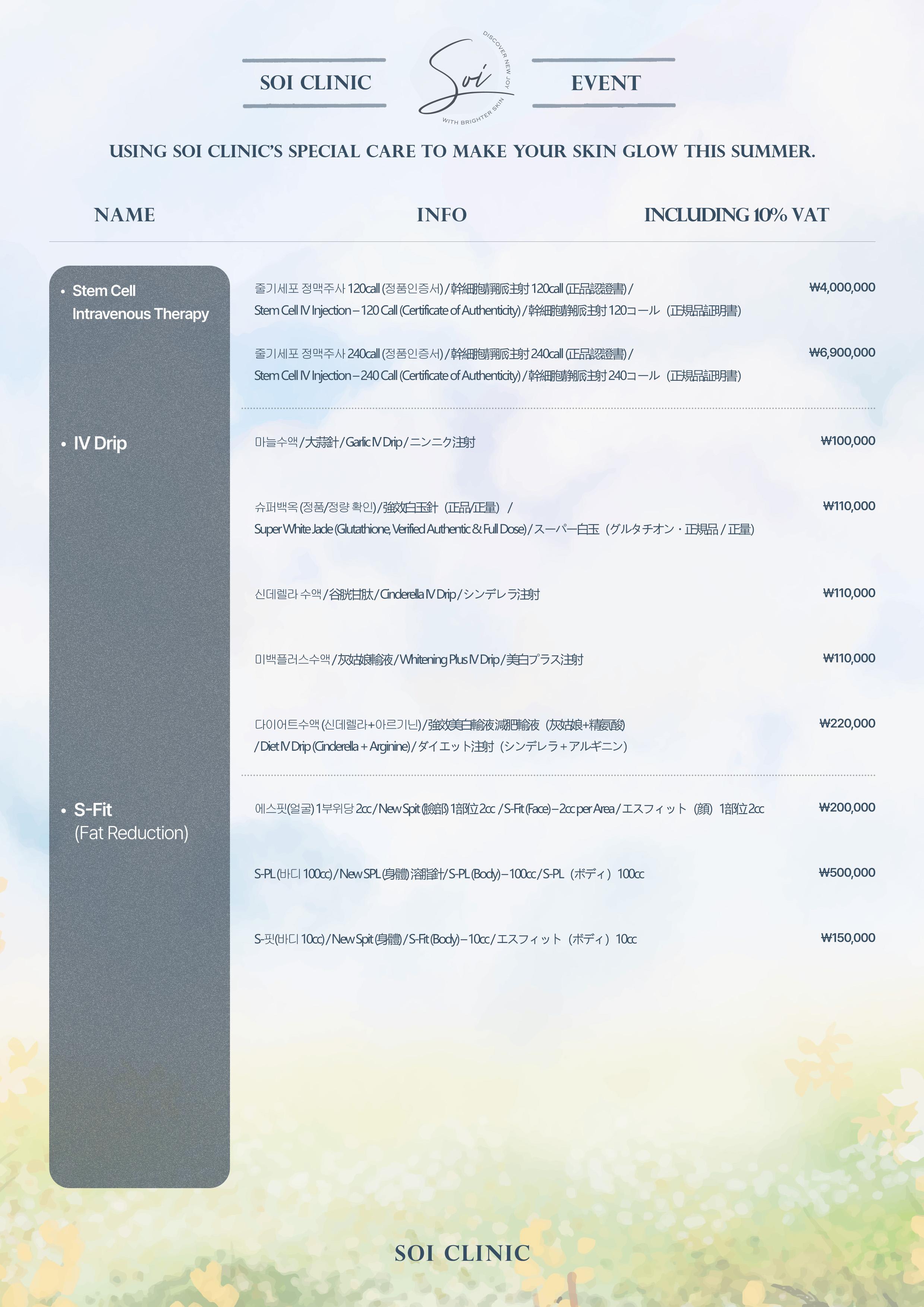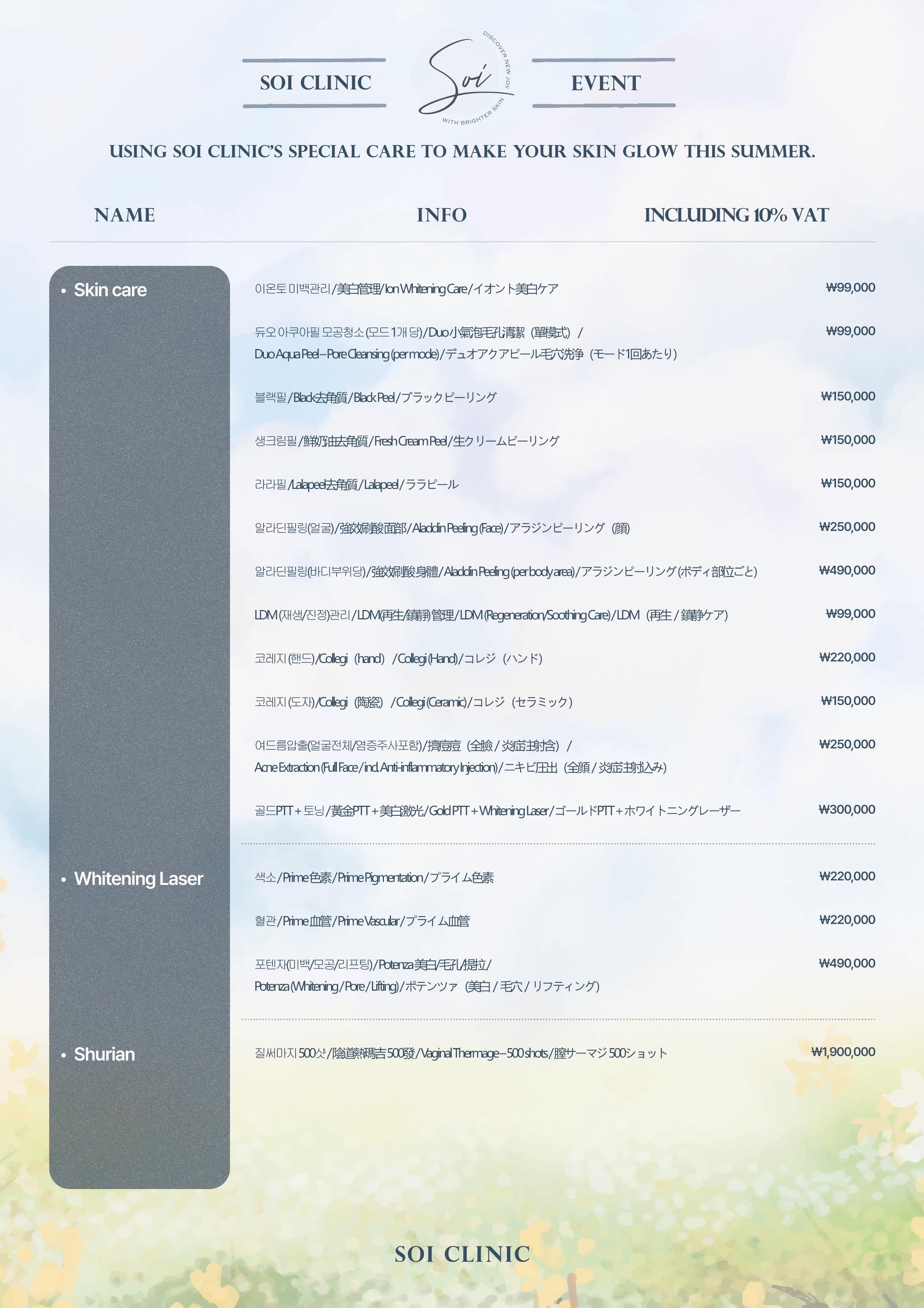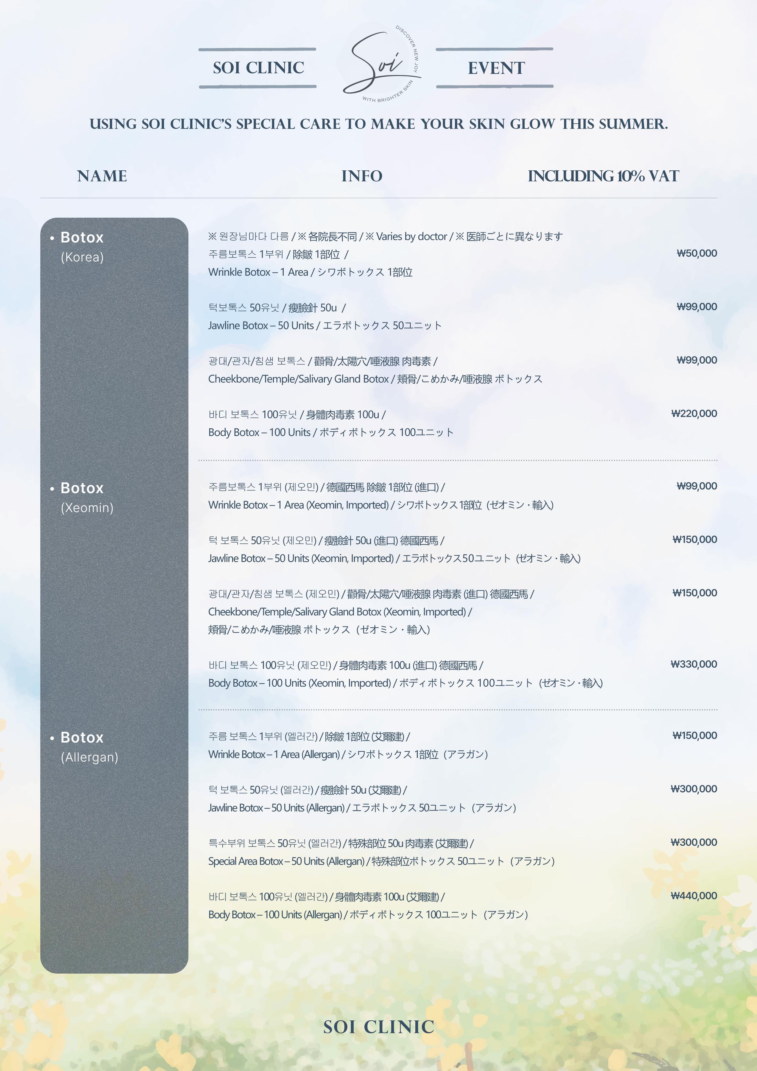 📋soi clinic價目表
