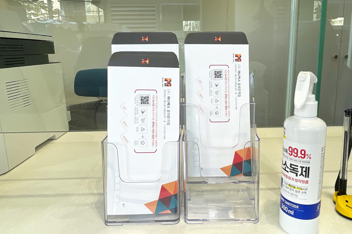 Một bên của cửa hàng có phong bì giấy để bạn dùng và có nước sát khuẩn ngay bên cạnh.
