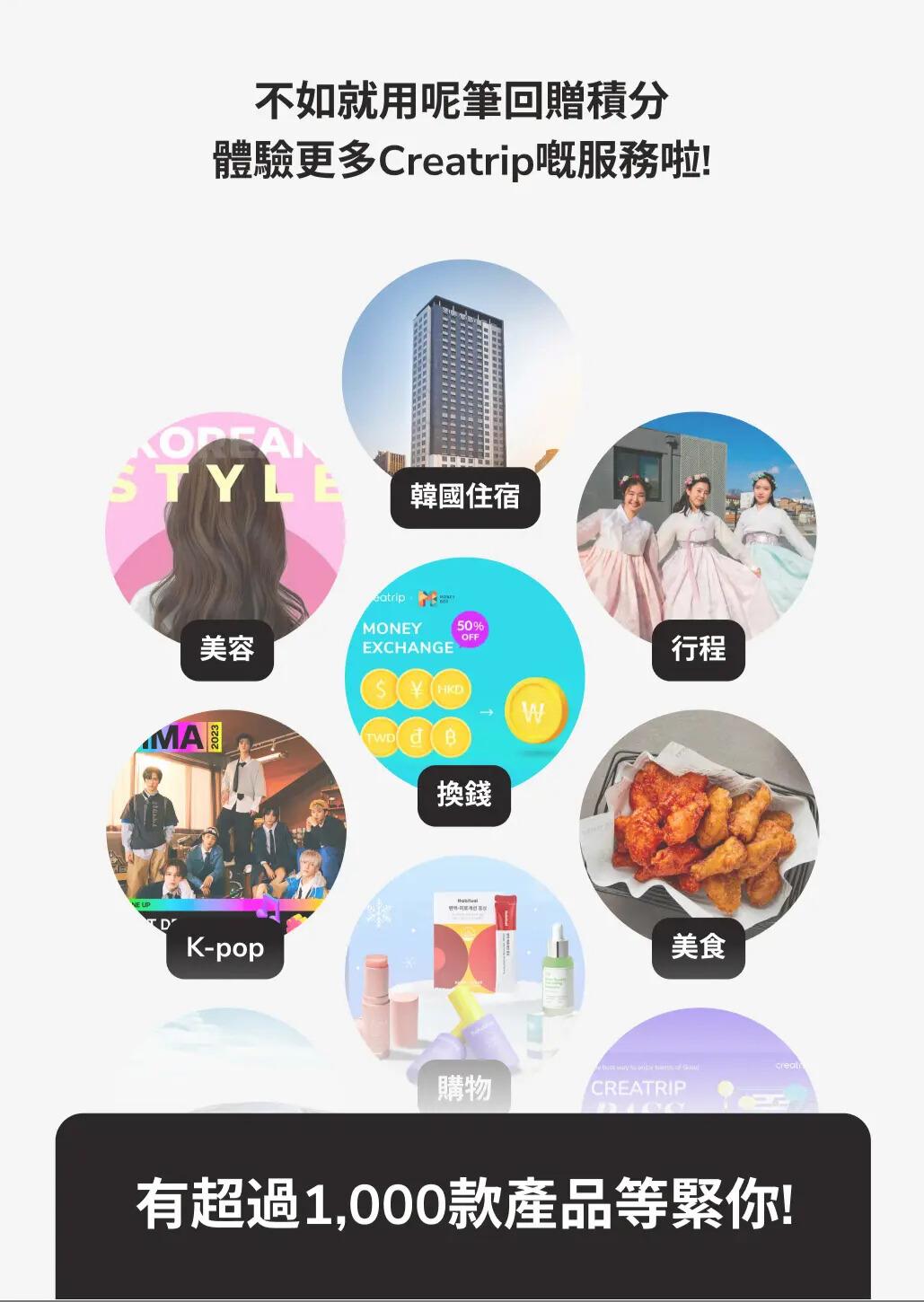 🌟 用Creatrip積分令你嘅韓國之旅更加充實!呢筆積分可以喺Creatrip網站消費嘅時候用,無論係book餐廳、叫外賣、預約旅行團/體驗定買各種韓國旅行必備用品都得!🤑 事先買定積分仲有最高8%回贈每1P積分等於港幣1蚊,而家買定積分仲會有回贈,變相可以喺我哋網站用優惠價預約超過上千款旅行商品!