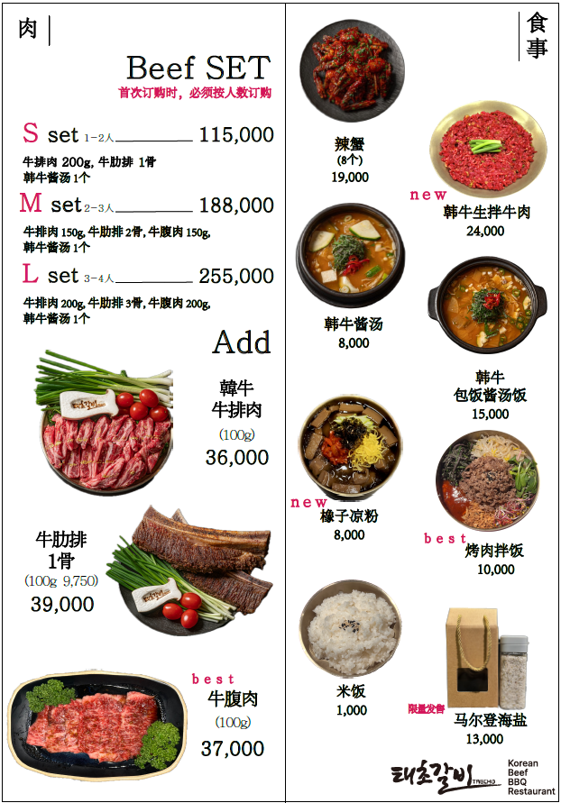 | 推薦原因👍🏻超誇張碳燒原條韓牛牛仔骨,新鮮又juicy!👍🏻職員全部都好熟手,包你可以食到熟度最完美嘅牛肉!👍🏻弘大入口站行2分鐘就到,交通夠方便!👍🏻透過Creatrip預約仲有獨家優惠,千祈唔好錯過啦!| Menu※2025年8月價錢,實際菜單及價錢以現場為準