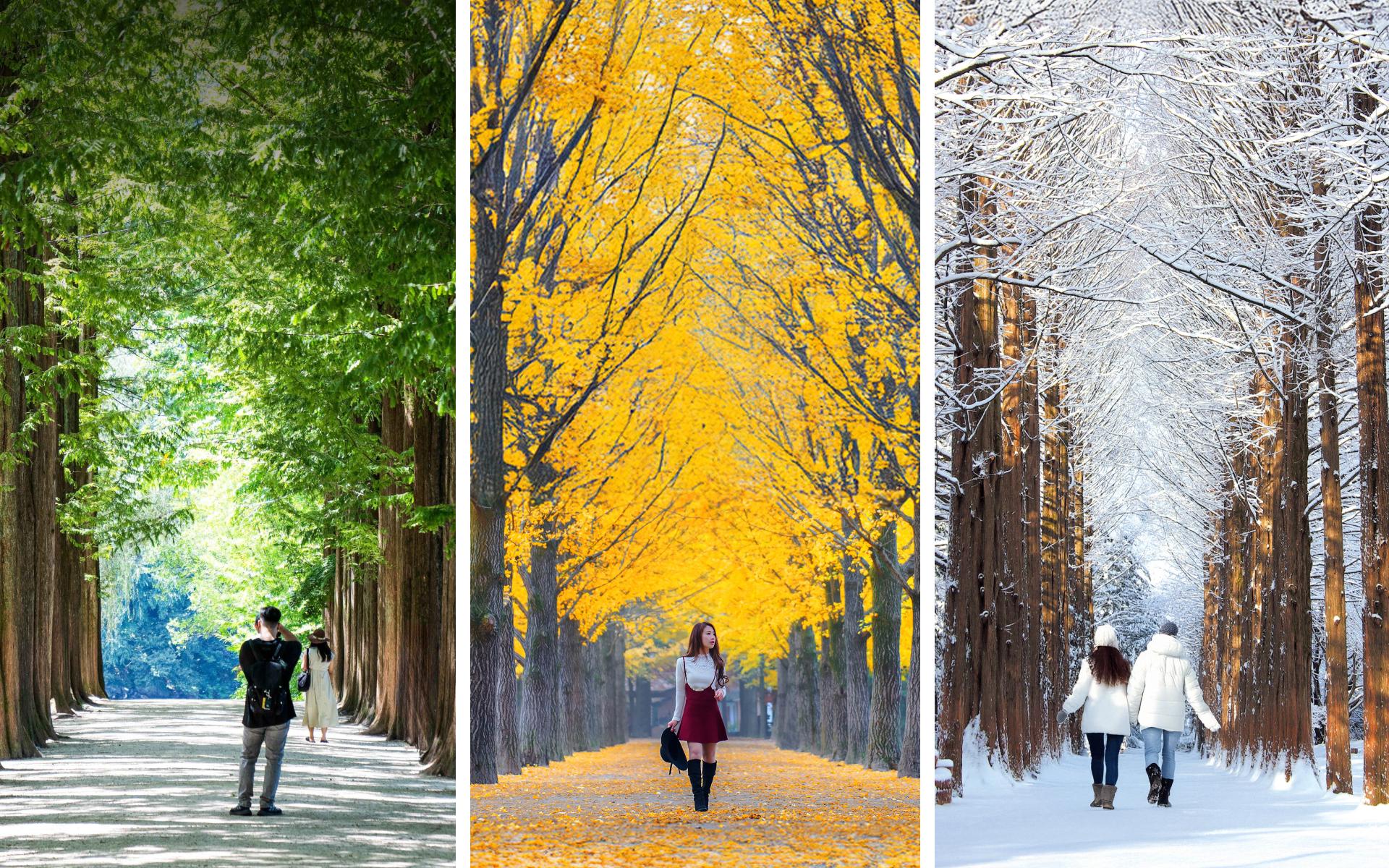 南怡島以浪漫樹蔭大道及韓劇拍攝地聞名,一年四季都可以欣賞到令人屏息嘅湖景。喺巨大嘅水杉樹或金黃色銀杏樹下散步,品嚐地道小食,並喺呢個必到嘅首爾一日遊景點影靚相留念。