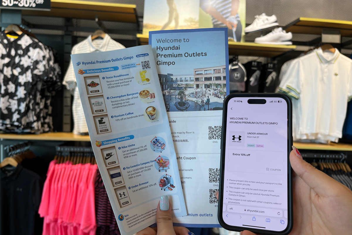 - 備註:持宣傳DM可於東大門Outlets領取禮品;宣傳DM上有QR Code可於金浦現代Outlets折扣