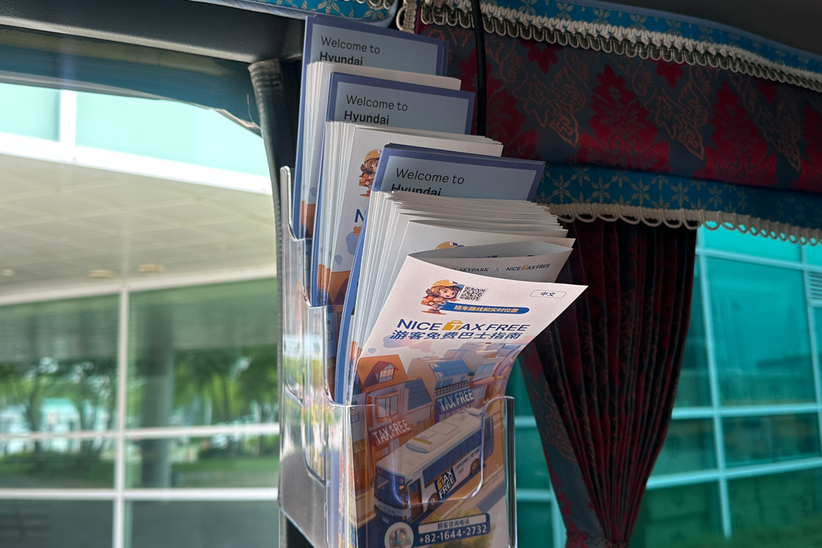 另外,搭乘接駁車時也別錯過車內的宣傳DM,上面的QR Code是「搭乘接駁車」旅客專屬,分別有東大門現代Outlets的贈禮優惠,以及金浦現代Outlets的折價券,但優惠內容會一直變,搭乘時千萬別錯過,記得拿DM掃一下。
