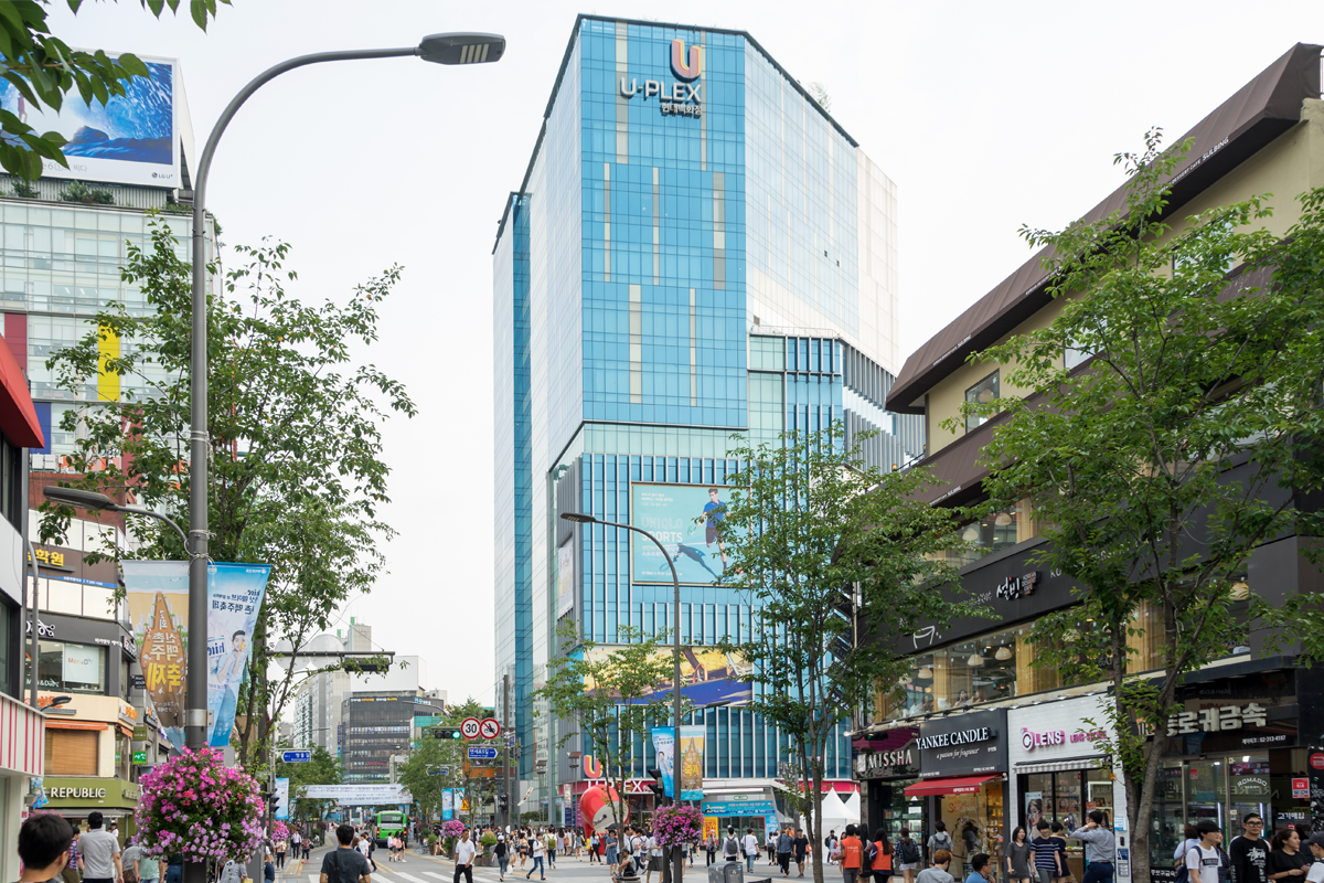 位於新村商圈鬧區,新村現代百貨與U-Plex相連,從新村站地下通道就能直接前往購物,免受天氣影響,首爾年輕人最愛的時尚品牌都能在這找到。