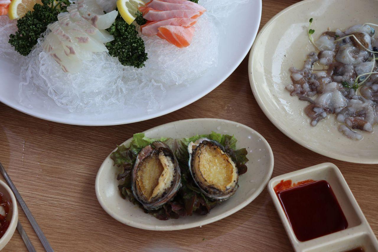 新鮮的章魚、鮑魚、生魚片,就這樣張牙舞爪地在餐桌上顯現最新鮮的樣貌。讓人難以忘懷的鮮味,可是首爾許多海鮮店都比不上的。